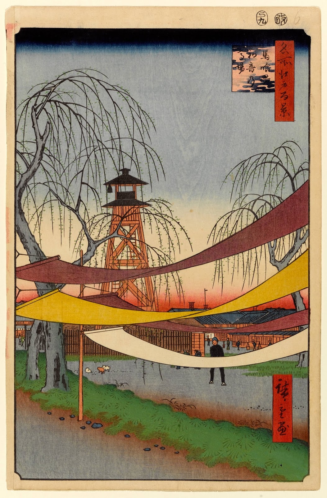 Лист 6 Скаковой круг Хацунэ в квартале Бакуро (Бакуро-тё̄. Хацунэ-но баба 馬喰町初音の馬場). Hatsune Riding Grounds, Bakuro-chō
